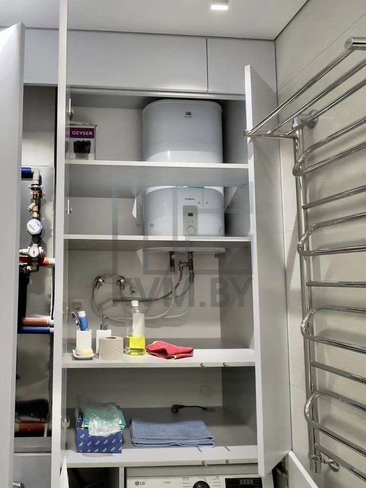 Создать особый комфорт нахождения в вашей ванной комнате можно всего лишь с помощью одного предмета мебели - светло-серого шкафа. Такой шкаф обладает изысканными визуальными свойствами, а также является очень удобным в использовании - в нём можно организовать хранение всех необходимых вещей личной гигиены, хозяйственных средств и иных необходимых быту вещей.